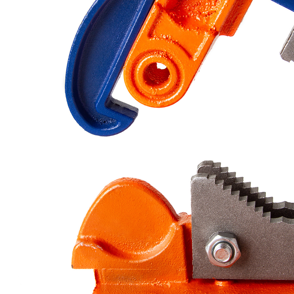 Przeznaczone do rur o wymiarach 2". Wykonane z żeliwa. Szczęki wykonane ze stali narzędziowej.