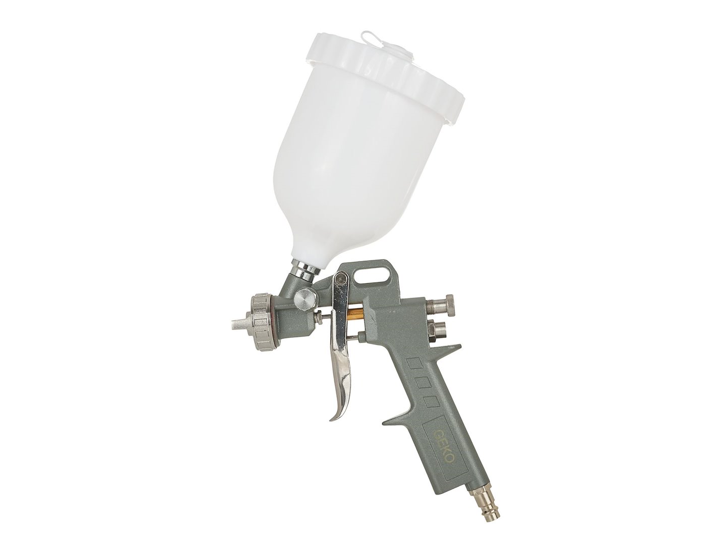 Pistolet lakierniczy przeznaczony do nanoszenia za pomocą sprężonego powietrza farb i lakierów. Pistolet jest zasilany sprężonym powietrzem. Powietrze z kompresora dociera do zbiornika z farbą i do dyszy pistoletu. Powstałe ciśnienie "wypycha" ciecz ze zbiornika, a rozpylone cząsteczki farby są wyrzucane poprzez dyszę na lakierowaną powierzchnię.